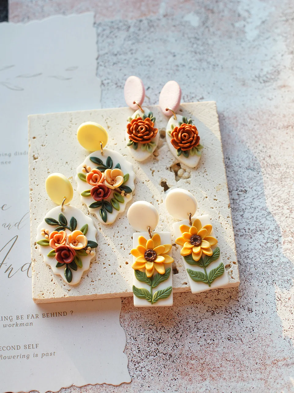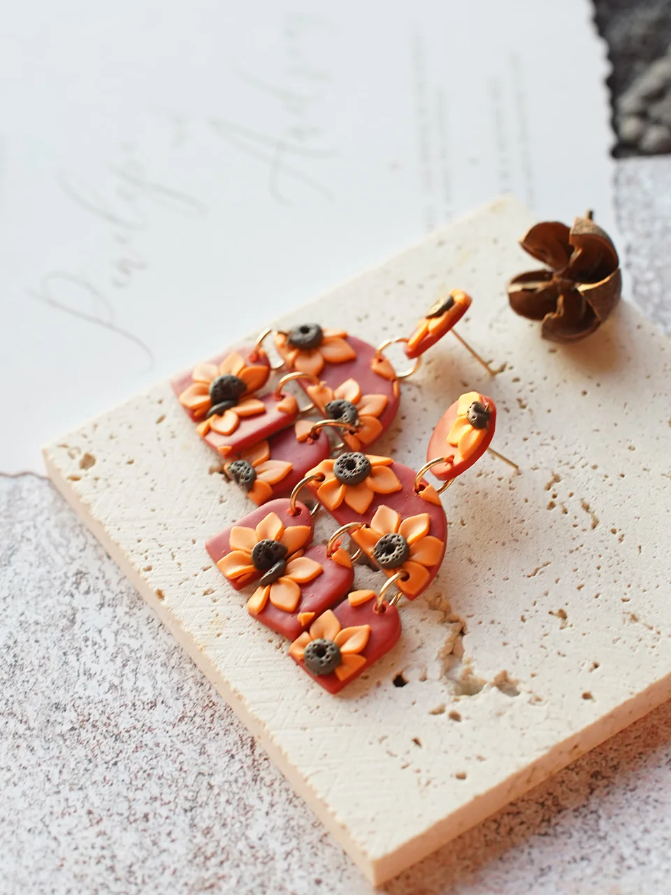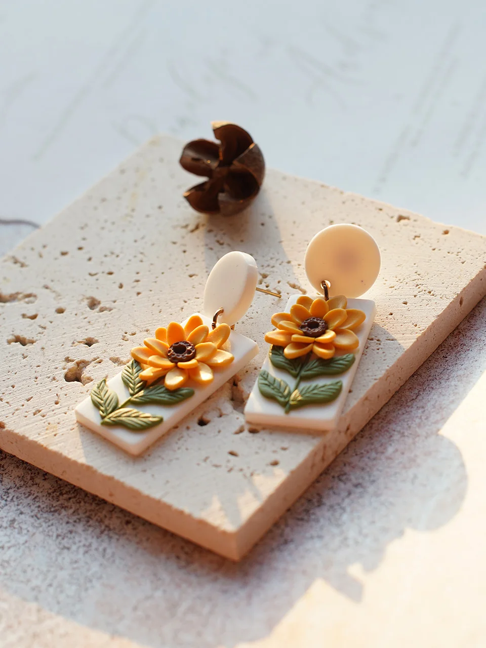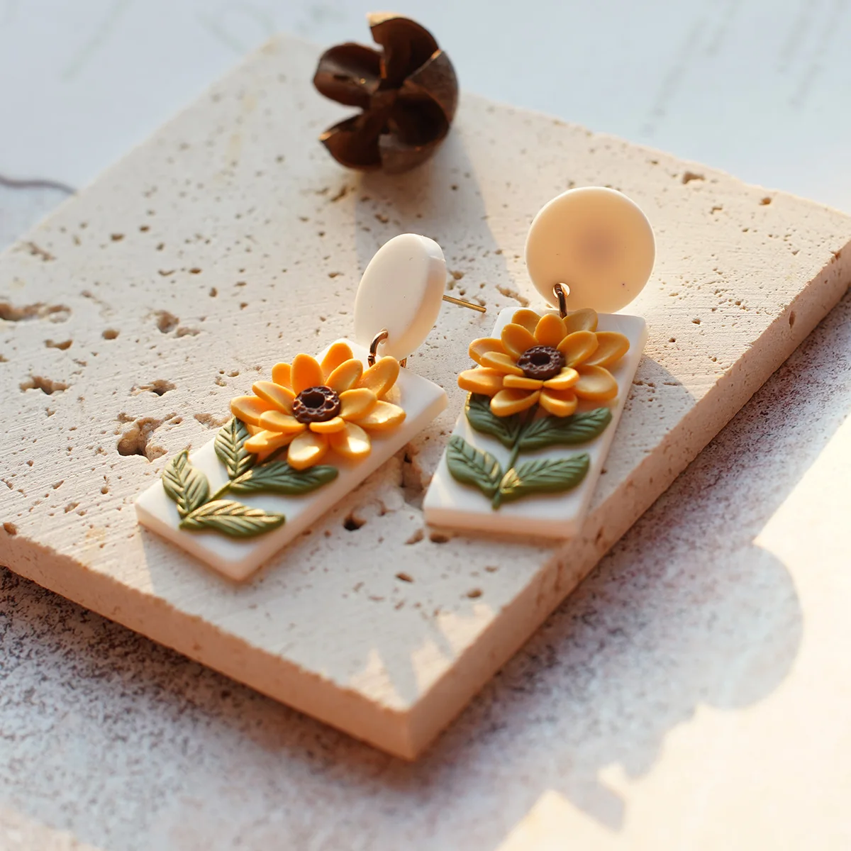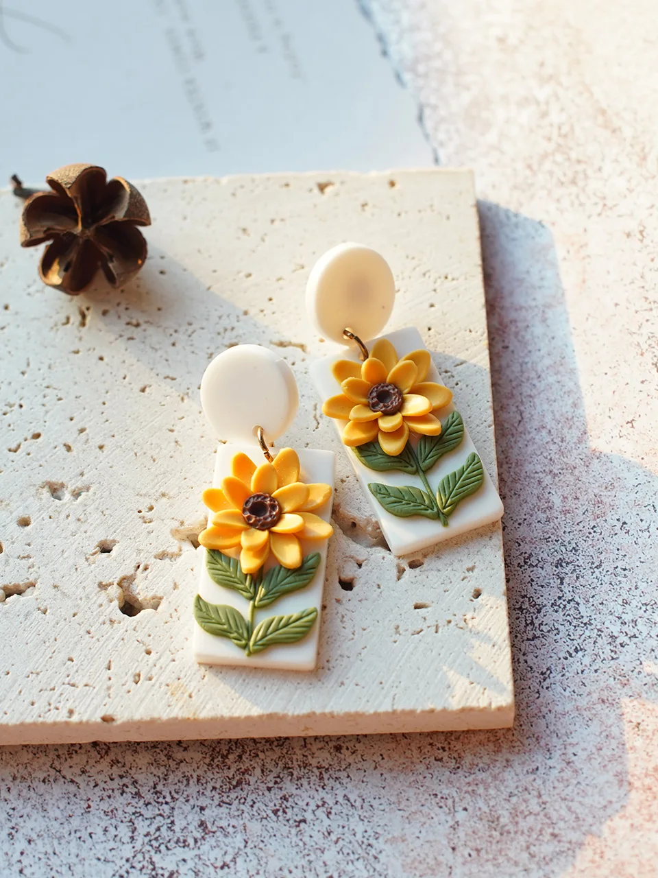 AENSOA Handmade Yellow Beaded Sunflower Drop Earrings for Women Girls Statement Seed Bead Floral Dangle Earrings Party Jewelry Material: Seed