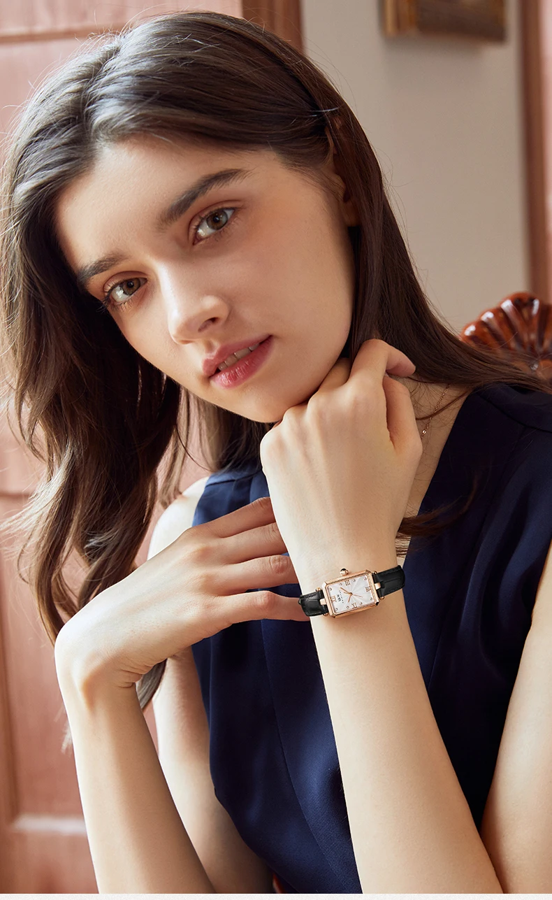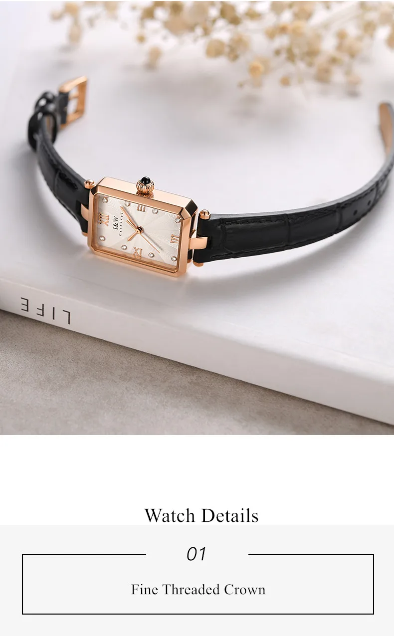 Description1.Fashion Women’s Watch: Elegant rectangle shape women’s minimalist easy-to-read watch with soft and wear-resistant leather strap, perfect for small wrists.